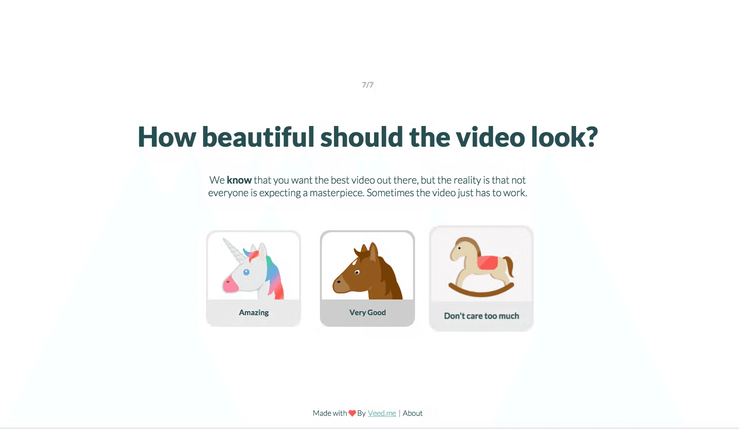 Though now defunct, as part of our growth marketing efforts while at Veed.me (later acquired by Fiverr), my colleagues and I launched a tool to take advantage of a very common Google search and the most common question we got asked in our industry: how much does it cost to make a professional video? Our tool allowed users to educate themselves on the real costs of video production (c. 2015) in less than a minute, gamifying the experience by explaining the inputs to production (special effects, editing, sound, location rental, animation, etc.) in a simple, digestible way. We funneled all users who completed the quiz directly to our videographer platform (our main product), resulting in hundreds of qualified leads. The minisite was featured on ProductHunt.com and received over 636 upvotes from its entrepreneur community.