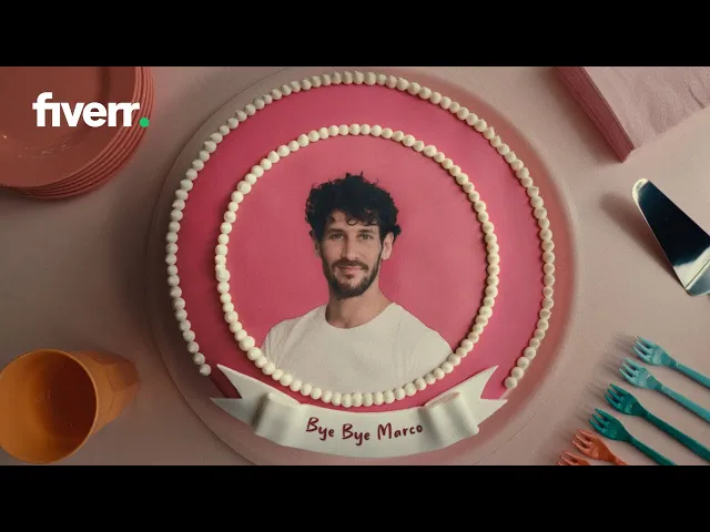 I co-led development and production of our 2022 global brand campaign, produced in-house without an agency and localized for five key global markets (US, UK, France, Germany and Australia) with over 100 unique video assets of varying lengths across TV and Digital. The hero spot celebrates a remote freelancer on Fiverr who is so beloved that employees throw him a going-away party, highlighting how freelancers today are increasingly seen as a true part of “the team.” Upon launch, we even sent some of our favorite freelancers cakes with their faces on it in IRL appreciation, an activation written up in Marketing Brew.