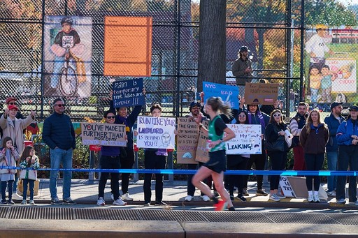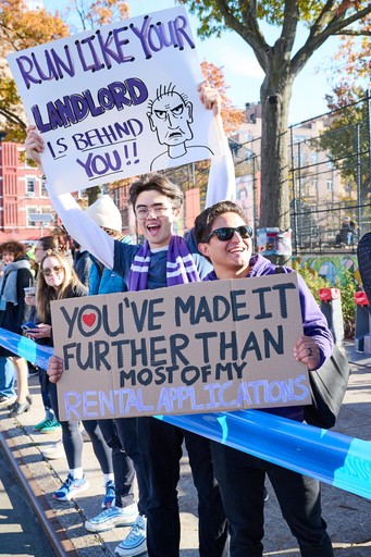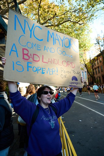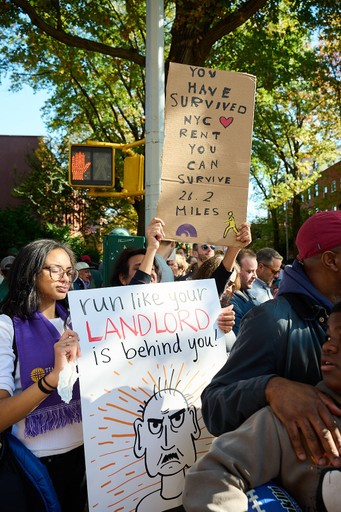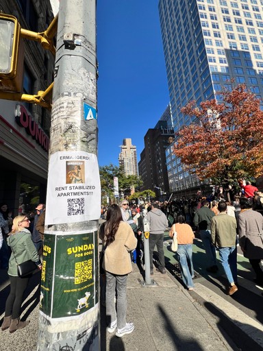 Four teams of NYC renters positioned across key cheer zones held humorous, painfully-relatable handmade signs connecting the marathon to the universal struggle of renting in the city. To reinforce the message, we layered on wildposters along the race route highlighting the number of rent-stabilized apartments nearby, plus analog QR flyers placed around high-foot-traffic corners: lean, local, and intentionally lo-fi.